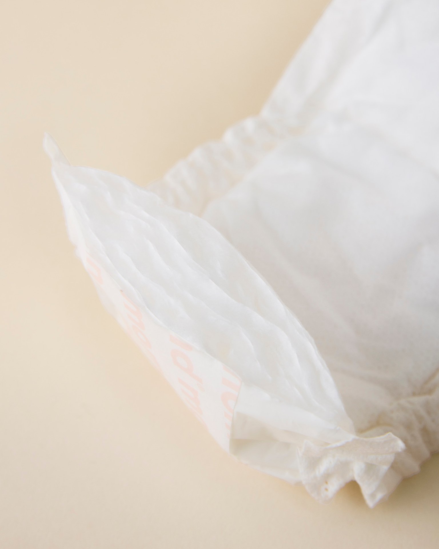 Använd stora förlossningsbindor för blödning efter förlossningen tillsammans med momkinds postpartum trosor. Vik ut bindan, ta bort tejpremsan och placera bindan mot huden innan du drar på nättrosorna. Byt vid behov och släng den använda förlossningsbindan i soporna med övrigt avfall. Spola aldrig ner bindor i toaletten.