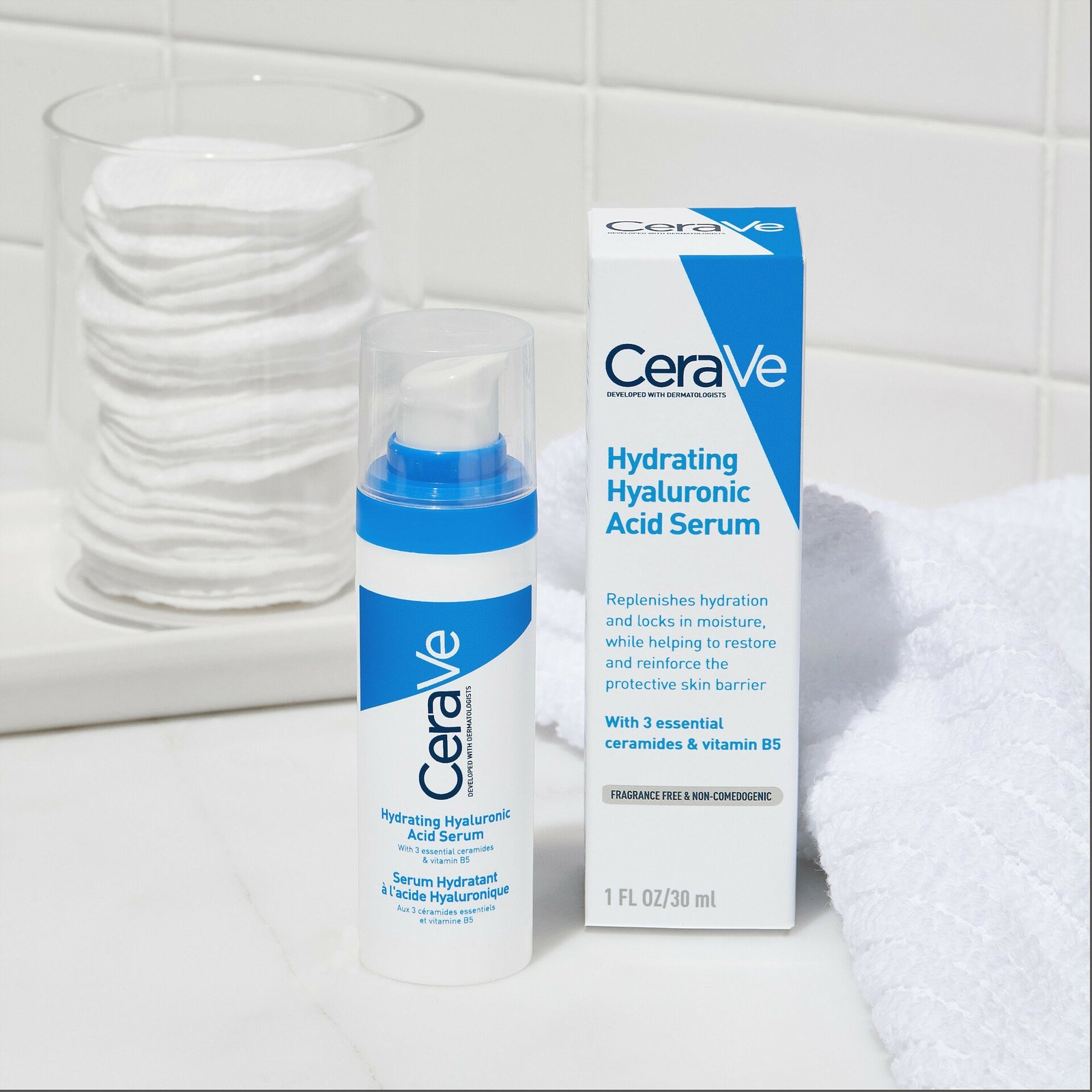 Fuktgivande serum med hyaluronsyra som återfuktar huden i upp till 24 timmar. Hyaluronsyra binder fukt till hudens yta och därmed hjälper huden att bevara sin naturliga fuktnivå. Innehåller även tre essentiella ceramider och vitamin B5 som hjälper till att stärka hudens skyddande barriär. Huden efterlämnas mjuk, slät och uppfriskad. Utan Parfym. Täpper inte till porerna.