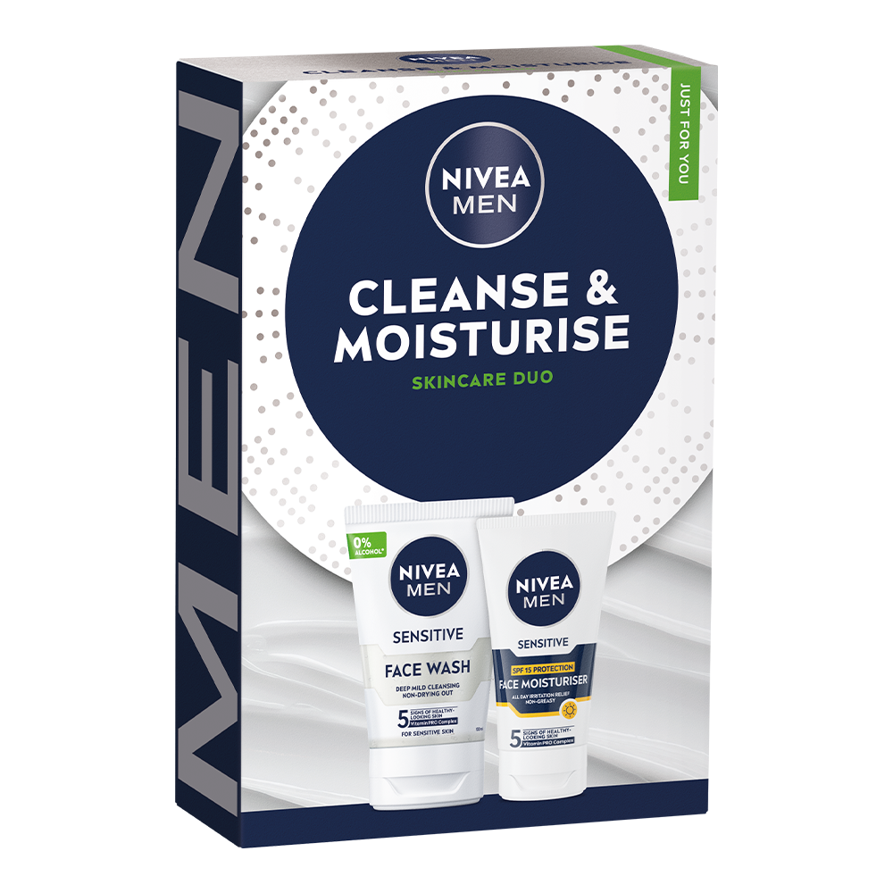 Alla produkter är dermatologiskt testade och utvalda för att passa känslig hud. NIVEA Giftpack Cleanse & Moisturise är helt enkelt en omtänksam present och en komplett lösning för män som vill ta hand om sin hud på bästa sätt.