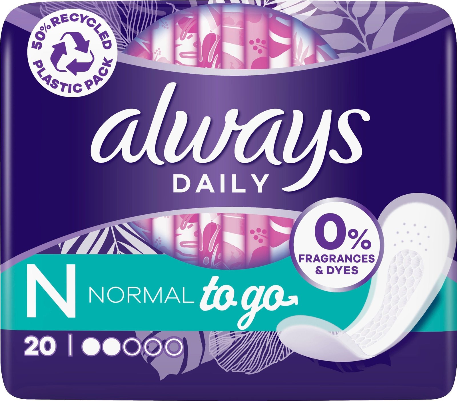 Håll dig fräsch och skyddad hela dagen med Always Daily Fresh Normal trosskydd. Ta med dig ett par individuellt förpackade trosskydd på morgonen och njut av en fräsch känsla hela dagen, varje dag. Med sin unika design erbjuder de en fantastisk kombination av komfort och skydd, så att du kan lita på dem varje dag utan att behöva oroa dig för att de ska kännas. Perfekt för flytningar, som extra skydd vid oregelbundna och lätta menstruationer eller för mindre blödningar. Dessa trosskydd innehåller ingen parfym.
