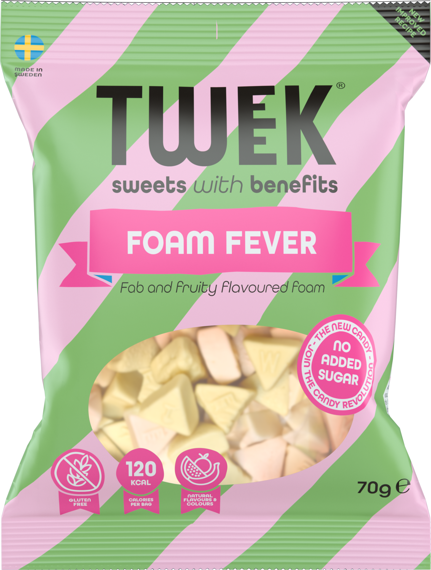 TWEEK Foam Fever är mjukt skumgodis. Med en smaskig fruktsmak. Glutenfritt.