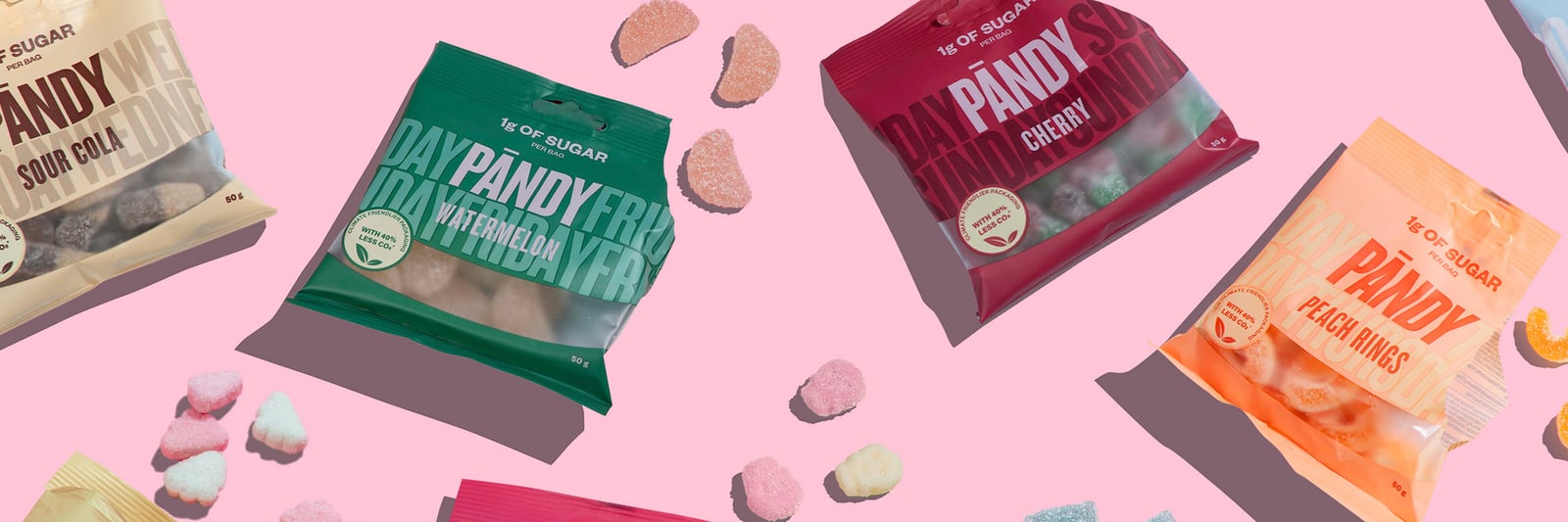 Pändy har sedan 2015 erbjudit allt ifrån funktionsdryck och proteinbars, till chips och godis. Alla Pändys produkter tillverkas i Sverige. Pändy tror att snacks kan och bör vara en del av en hälsosam livsstil. Pändy producerar “better-for-you”-produkter utan att någonsin kompromissa på smaken. Pändy tar populära snacks och smaker och gör mer hälsosamma, men minst lika goda versioner av det. De innehåller lite socker, har ett högt proteininnehåll, är kalorisnåla – och är samtidigt riktigt smarriga. Visst låter det för bra för att vara för sant? Inte för Pändy. Prova!