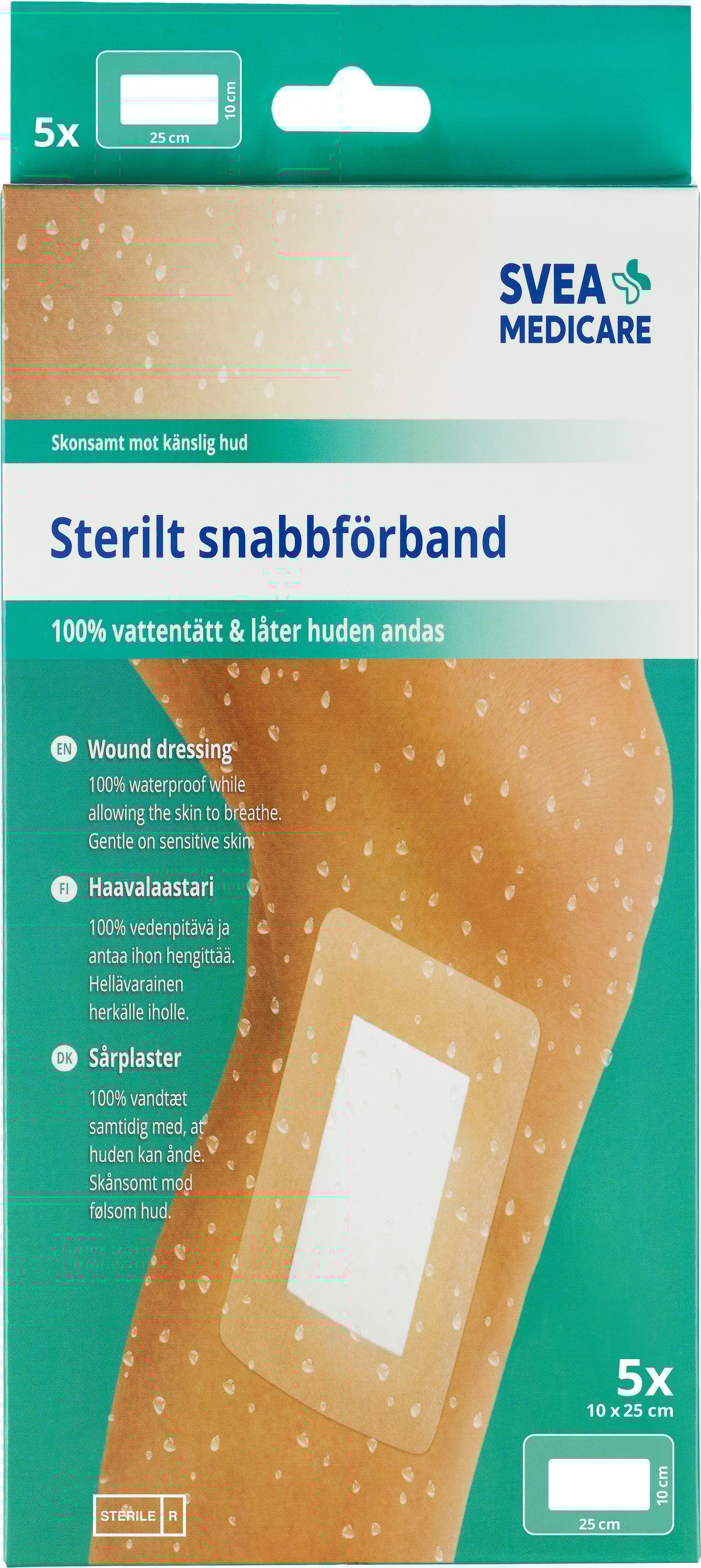100% Vattentätt Sterilt Snabbförband 10 x 25 cm 5 st