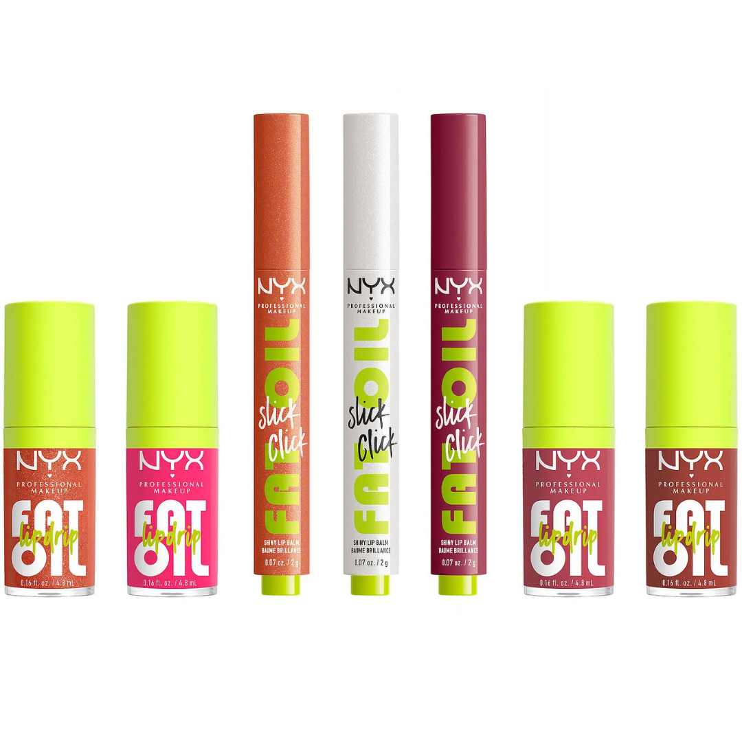 Föråackningen innehåller 4 olika nyanser av Fat Oil Lip Drip läppglans och 3 olika nyanser av Fat Oil Slick Click läppbalsam.