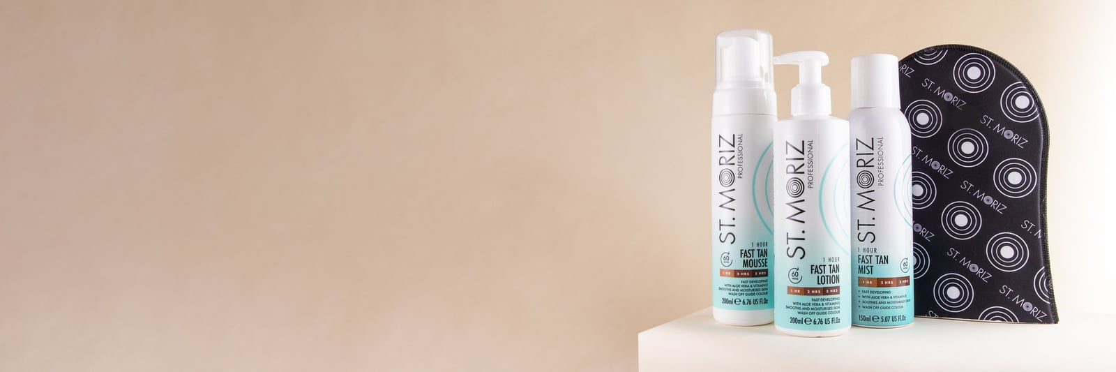 - St. Moriz 1 Hour Fast Tanning Mousse – Har du ont om tid? Denna snabba mousse låter dig bestämma själv – skölj av efter 1 timme för en lätt bränna eller låt den verka längre för ett djupare resultat.
