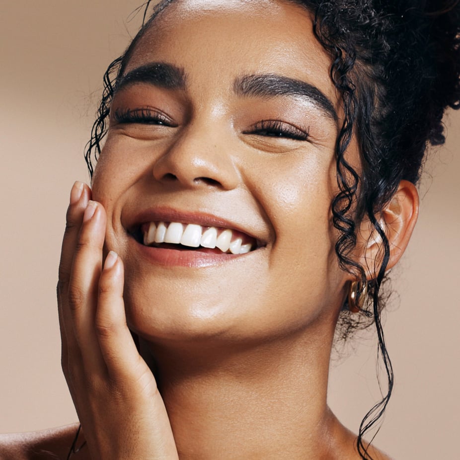En mild ansiktsrengöring är A och O. Undvik starka produkter som torkar ut huden. Testa att dubbelrengöra huden (oljerengöring + vattenbaserad rengöring) för att ta bort smuts och smink utan att torka ut huden.