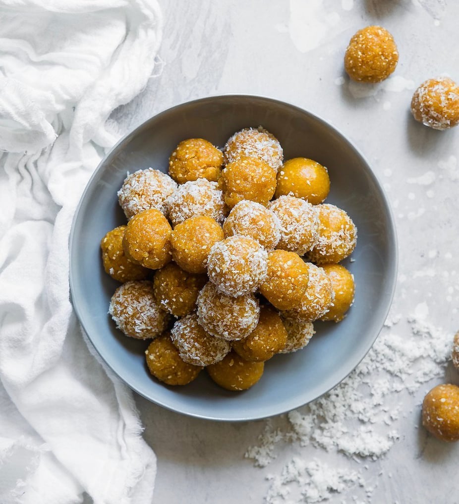 Forma små bollar och rulla i kokos. Njut direkt eller förvara i kylen!