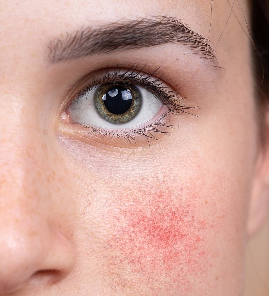 Rosacea är en hudsjukdom som ger rodnad och utslag i ansiktet. Det finns många olika grader och varianter av rosacea, därför kan det se olika ut från person till person. En del har lätt rosacea och upplever bara lite rodnad då och då, medan andra kämpar med bölder som liknar akne, blåsor eller knottror – som dessutom kan klia, svida och irritera. Det kan vara skönt att veta att rosacea inte smittar!