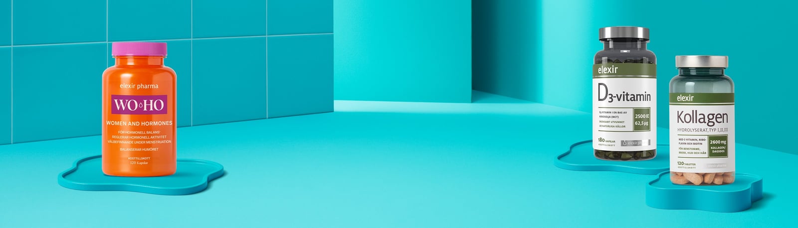 Hur vet en att en får i sig tillräckligt med vitaminer och mineraler? Din kropp behöver olika näringsämnen för att uppfylla alla behov och må bra, bland annat: kolhydrater, fett, protein, vitaminer och mineraler. Kosttillskott är vitaminer och mineraler i koncentrerad form. Omega 3 och fettsyror, D-vitamin, C-vitamin, B-vitamin och b12, samt multivitamin brukar vara populärt. Sen finns också anpassade kosttillskott för dig som är vegan, dig som tränar, vitaminer för barn, kosttillskott för barn, samt kosttillskott för gravida med till exempel folsyra och järn. Dessutom finns kosttillskott i alla former: flytande, pulver, tuggisar och piller. Två populära märken inom tillskott som du hittar här är Elexir Pharma och ACO. Dock är det viktig att komma ihåg att kosttillskott inte ska ersätta en varierad kost och en hälsosam livsstil! Mat och livsmedel som innehåller mycket näring är till exempel fullkornsprodukter, grönsaker, fet fisk, frukt, frön och nötter.