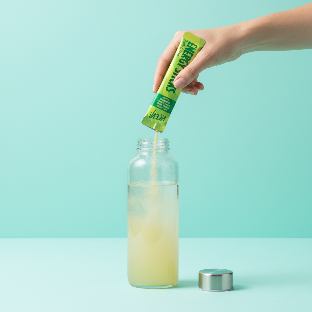 Energy Sticks är veganska, fria från tillsatt socker och ett mer klimatsmart alternativ än energidryck på burk. De tar minimalt med plats, är enkla att ta med och blandas snabbt i vatten. Perfekt för gymmet, jobbet eller resan.